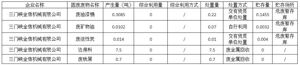 年固體(tǐ)廢(fèi)物污染防治信息公示表